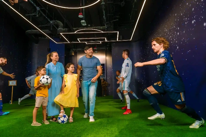 Experiencia deportiva interactiva para fanáticos del fútbol.