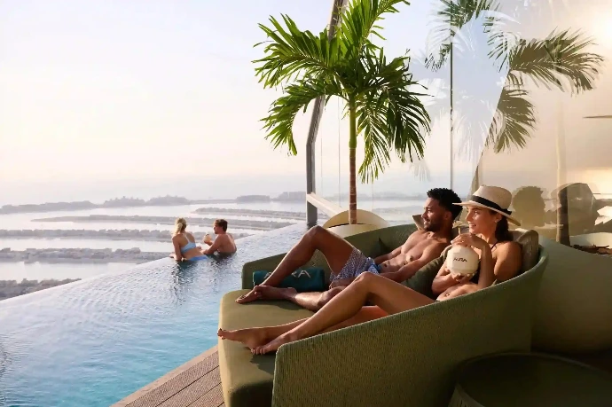 Piscina en altura con vistas panorámicas de Dubái.